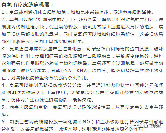 2.抗炎作用。臭氧可以诱导抗氧化酶的过度表达以中和过量的活性氧属,刺激拮抗性细胞因子和免疫抑制因子的释放;同时臭氧可以使内皮细胞释放NO,使血管舒张,减轻局部组织缺氧,促进炎症消退。